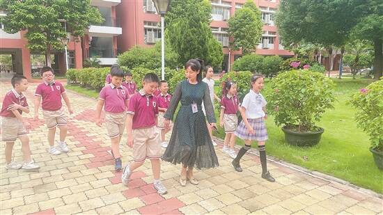在东莞外国语学校,老师和学生午餐后在校内散步 校方供图 |