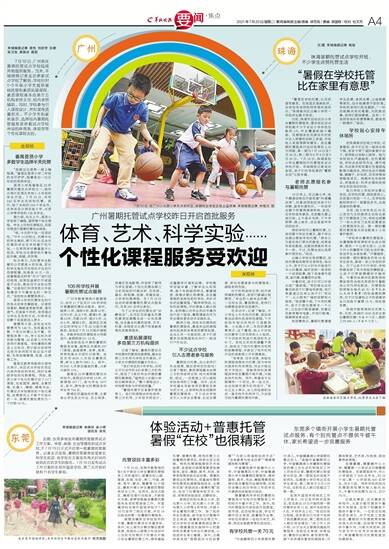 羊城晚报记者 蒋隽 刘欣宇 孙唯 实习生 孟晓冰 杨蕊 7月19日,广州各区暑期托管试点学校陆续开始提供服务。当天,羊城晚报记者走访多家试点学校了解到,学校针对1-5年级