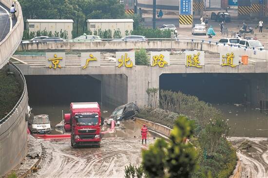 羊城晚报讯 特派郑州记者侯梦菲报道:河南郑州的特大暴雨,导致市内多条隧道被洪水“灌满”。其中,最令人揪心的就是京广路隧道。7月20日晚,京广路隧道被淹,有车辆和人员被困。23日上午,记者沿陇海路高架来到京广北路隧道,站在高架桥上,可以看到多台抽水机正在紧急排水,隧道水面已经明显下降。 骑车路过此处的夏先生告诉记者,他昨天早上路过此地,还看到大量车辆漂浮在隧道口,高架桥下还有大量积水。郑州居民李建军的家就在隧道口,窗户正对着隧道口。“昨天晚上,隧道口南侧清理出上百辆车,被救援车拉出,但没有见到有人员救出。”他告诉记者,最近几天家中窗户都不敢开,“洪水过后,外面的味道很重。” 记者离开时,现场有大量救援人员正组织施救。“现在我们最大的愿望就是隧道中没有被困人员。”夏先生说。