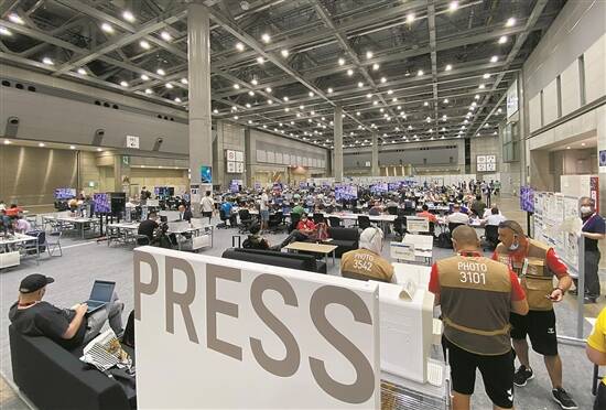 羊城晚报特派记者昨天来到位于东京江东区国际展览中心的东京奥运会主新闻中心(MPC),这里是前来采访奥运的1万多名记者的大本营,也是奥运会的信息中枢。由于疫情,很多原先报名前来的媒体纷纷打了退堂鼓,但昨天的MPC依然人流如鲫,预示着奥运会的脚步已经越来越近。 与很多届奥运会不同,这次东京奥运会的MPC没有设在主体育中心附近,而是放在距日本奥林匹克场15公里外的东京湾。MPC所在的东京国际展览中心是日本首都的地标性建筑之一,58米高的主建筑外形像一个倒置的金字塔,远远看去非常显眼。新冠疫情之前,每年来这里参观的游客多达1600万。 与以往最大不同的是,防疫检查措施成为这次MPC重中之重。从入口开始,就显示出MPC对防疫的重视。工作人员对测量体温的认真程度甚至超过了对证件的检查,每道入口都放着手指消毒液。最后一道入口处,还有更先进的电子测温仪,每个人经过时,面部形象出现在屏幕上,体温也同步显示,体温一旦超标,立刻会发出警报。任何可能排队的地方,包括卫生间内,地面上都有保持社交距离的标志。 林林总总的消毒液成为MPC的一道“奇观”:最多的自然是瓶装手摁的,也有自动喷洒的,有液体的也有雾状的,最特别的是,为了防止人们手按可能造成的交叉感染,还有用脚踏出消毒液的设置。 MPC四楼的一半地方几乎都设置为核酸检测中心。按组委会的规定,每位抵达日本的记者头三天必须隔离,如果不隔离,也可以选择每天到MPC验一次核酸,只要是阴性也没问题。但这条规定现在看来似乎形同虚设,记者在检测区门口站立了10分钟,基本没有见到一位记者进入检测,偌大的检测中心空空荡荡,里面的志愿者、工作人员三三两两聊天打发时间。 MPC内以宣传画、标语、漫画等形式,无时无刻地在提醒着人们,这是一届疫情下的奥运会。记者工作大厅内每个工位上都放置了隔离用的塑料隔板,每位记者在一个个相隔的位置上打字,有点像以前邮局的长途电话间。在每个显眼的位置,都张贴着有关防疫“三大法宝”的标志:“戴口罩、手指消毒、保持距离”。咖啡厅外的圆桌上也有警告:不要面对面吃东西。 在大堂的接待台里,有20多名志愿者和工作人员为络绎不绝的记者服务,她们至少可以提供九种语言的翻译,还能熟练地帮助记者安装下载奥运预约、班车、动态通知等APP,其热情让人深为所动。 位于二楼的商店、邮局、银行和东京旅游信息咨询台也都已经开放,媒体餐厅虽然价格比较贵,但因为仅此一间,前来就餐者也不少。位于记者工作室大厅的中央有一小块茶叙的地方,有开水、咖啡及茶包,还有一小篮点心,但这样“迷你”的点心篮,实在经不住上千记者的“狂轰滥炸”,通常的状态是空空如也。 MPC的WIFI名称为“ Sakura2020”,中文意思是“樱花2020”。这样浪漫的名字,让人不由自主地想起高速公路上粉红的奥运交通标志。在樱花早已落尽的7月,东京奥运会真的要来了。 羊城晚报特派东京记者 周方平 郝浩宇