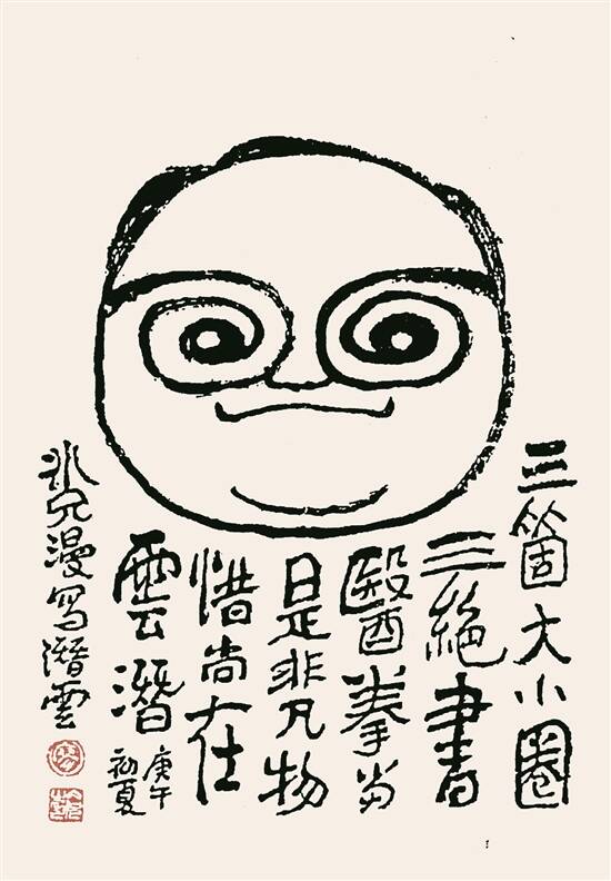 廖冰兄为区潜云所作漫画像 |