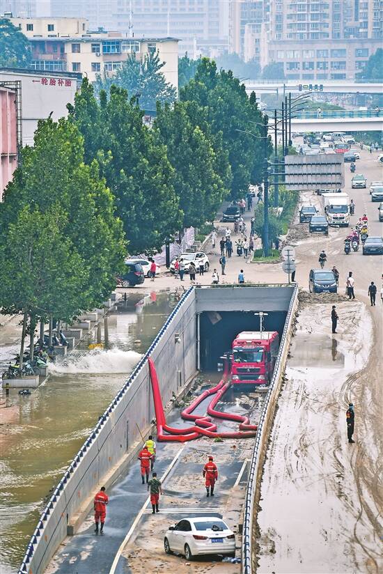23日上午,京广北路隧道,抽水机一直紧急排水