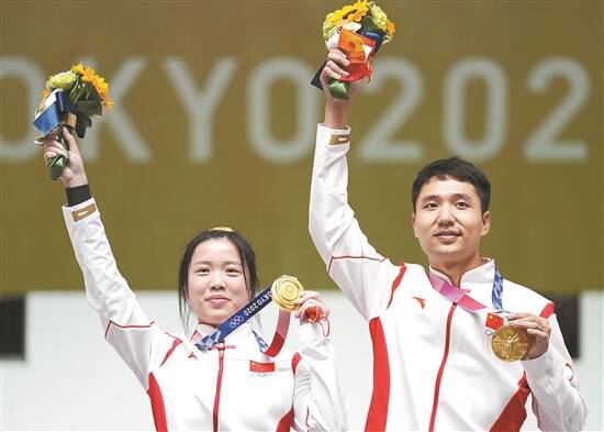 “奇袭”夺冠 张家齐陈芋汐夺得女子双人十米跳台金牌 双枪合璧 杨倩杨皓然夺10米气步枪混合团体金牌 详见A10、A11