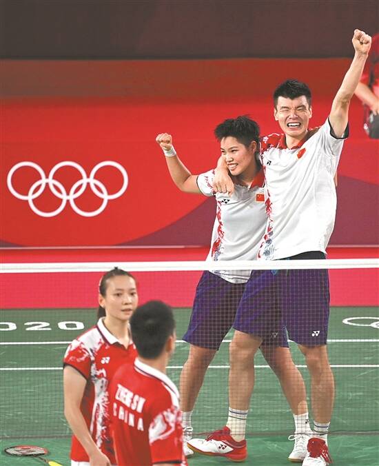 昨日,王懿律/黄东萍在羽毛球混双决赛中获金牌,郑思维/黄雅琼摘银 羊城晚报特派东京记者 汤铭明 摄