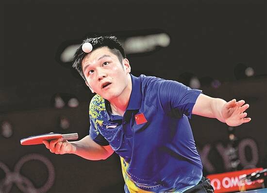 樊振东在比赛中 羊城晚报特派东京记者 汤铭明 摄 |