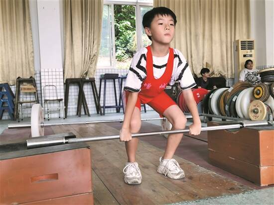 正在训练的举重小将 苏荇 摄 |