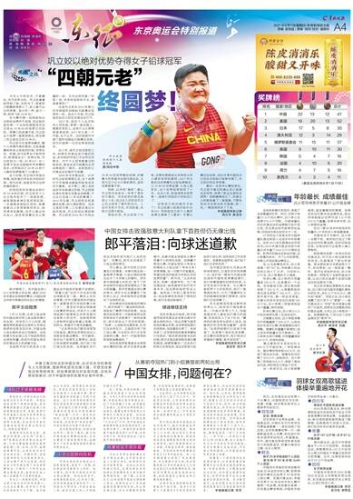 2021年8月1日/星期日/ 体育新闻部主编 责编 赵亮晨 / 美编 肖莎/ 校对 潘丽玲 总策划:刘海陵 林海利 总统筹:孙 璇 统 筹:陶 勇 蒋 铮 胡