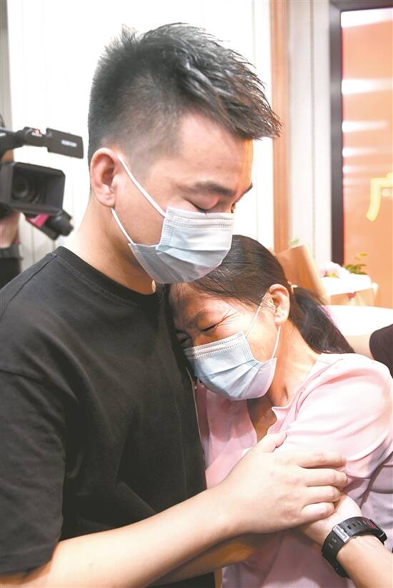 李阿姨和失散多年的孩子小金拥抱在一起 |