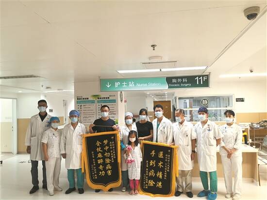 羊城晚报讯 记者王俊、通讯员王楚豫摄影报道:7月30日,在浙大附属儿童医院胸外科谭征教授的指导下,深圳市人民医院胸外科达芬奇机器人王光锁团队为7岁女孩小优优成功进行手术。这也是华南首例机器人小儿胸外科手术。 7岁女孩小优优还在妈妈肚子的时候,就被检查出胸腔里长了颗“小豌豆”,诊断为后纵隔肿瘤占位。优优最开始倒是没有明显的不舒服,与其他小朋友一样,觉睡得好,饭也吃得香,优优妈妈就没带她去做手术。一段时间过去,优优吃饭吞咽时总感到有些阻碍,今年年初优优妈妈带她复查,发现优优那颗纵隔肿瘤近年来逐渐增大,经检查发现,肿瘤已长大至柠檬般大小,位于心脏后方,跨越左右胸腔和部分腹膜后,与食道关系密切,压迫到食管,使得食管变窄,需要手术切除。 2个月前的一个周三下午,优优妈妈带着优优来到了深圳市人民医院名医门诊,找到王光锁教授。检查后,王光锁教授认为手术时机不宜继续推迟,可以考虑切除,并为小优优量身定制个体化手术方案。 怎么做才能以最小的创伤,精准切除潜伏在后纵隔狭窄间隙里、跨越左右胸腔和胸腹腔的肿瘤呢?“在狭窄的间隙和空间精准操作,这恰是手术机器人的优势所在。”王光锁教授介绍。而达芬奇机器人操作系统是外科领域划时代的新技术,能够达到更接近理想的手术效果、更小的创伤和更大的患者适用范围。 最终,优优妈妈和王光锁教授确定了达芬奇机器人手术方案,并预约暑期进行。由于儿童胸腔空间小,机器人工作空间小,操作在更加局限的范围内进行,对麻醉也提出更高的要求。经验丰富的麻醉科主任张中军和主任医师李亚丽为优优制定了麻醉方案,深圳市人民医院胸外科团队精心设计布孔,采用达芬奇多微孔机器人方案,历时40分钟,顺利地完成了手术。手术后第一天,小优优状态很好,一早就下床活动,跟科室的护士姐姐们玩得很开心,优优妈妈悬着的心也终于落了地。