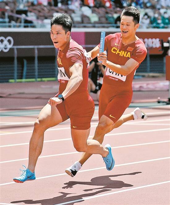 赛事预告 8月6日21时30分 女子4×100米接力决赛 8月6日21时50分 男子4×100米接力决赛 田径比赛昨天在东京新国立竞技场继续进行。在4×100米接力预赛中,中国男、女队发挥出色,双双晋级决赛,在东京奥运会的赛场上,中国速度继续向前冲。 女队:要稳,保证成绩 5年前的里约奥运会,中国女子4×100米接力距离闯入决赛只差一步之遥。中国女队本以42秒70的成绩位列第八进入决赛。但半决赛出现重大失误的美国队申诉成功,获得单独重跑的机会,最终将中国女队挤出了八强,这一次她们要弥补遗憾。 接力比赛参赛的16支队伍分成两组,每组前三名以及两名成绩最好的队伍晋级决赛。中国女队分在第二组,排在第三道,出场顺序是梁小静、葛曼棋、黄瑰芬和韦永丽。第一棒梁小静出发不错,交接棒非常顺利,葛曼棋在第二棒保持住速度,但在与三棒交接时并不顺畅。黄瑰芬保住了第三的位置,最后一棒韦永丽稳扎稳打,第三个冲过了终点。无论成绩如何,这个名次确保闯入决赛了。第四棒的韦永丽和第一棒的梁小静在终点线后汇合,来了一个热烈的拥抱。另外两名选手很快赶了过来,四人一同欢庆晋级。 42秒82,距离中国队赛季最好成绩只差0.02秒,也是这四人组合跑出的最佳成绩。如果克服比赛过程中的瑕疵,成绩还能更好。葛曼棋轻松地说:“虽然遇到些问题,还是靠实力调整了过来。”团队中有三名选手参加了里约奥运会,“新人”黄瑰芬戏称自己是“幸运儿”。 闯入奥运会决赛,“大姐”韦永丽称,不仅仅是五年的等待,对她来说已经整整十年了,其间的每一场重要比赛她都参加了。为了梦想一直坚持,韦永丽感谢队友,感谢团队所有人的付出,是大家齐心协力铺好了基石,才让中国女子接力队的路更好走。对于决赛,韦永丽低调表示:“先要稳,保证有成绩!”梁小静则放出豪言,有机会的话要冲击42秒23的亚洲纪录。 男队:太快,脚下滚烫 一个多小时后,男子4×100米接力预赛开始,晋级规则与女子一致。中国队排在第二组的第四道。 在里约奥运会上,中国男子4×100米接力获得了第四名。与那时的阵容相比,汤星强替代了退役的张培萌,吴智强从第一棒换到了第四棒。同组对手有美国队,拥有新科百米冠军雅各布斯的意大利队和德国队的实力也相当强劲。 队的发挥非常出色,出发反应时间0.152秒,前两棒的汤星强和谢震业紧紧咬住,第三棒苏炳添在弯道超越,为中国队取得领先。最后一棒,吴智强守住优势,中国队第一个冲过终点,夺冠大热美国队反而因为交接棒失误遭到淘汰。 中国四位选手,三次交接虽然说不上完美,但还算顺利。37秒92是中国队本赛季最好成绩。值得一提的是,这套阵容此前还没有在实战中配合过,这次预赛是四人实战首秀。 赛后谢震业笑言:“跑得太快了,脚下滚烫,就像踩了风火轮一样。”他说的是比赛时天气炎热,跑道很烫,尤其是最后两棒的选手更要在跑道上等候较久。苏炳添也对谢震业开起玩笑:“我看就你那个位置(第二棒)比较阴凉,我那里好晒啊!” 男子100米决赛后,苏炳添曾经表示,后面最大的目标就是接力,争取打破全国纪录,“打破全国纪录是我们参加奥运会的底线,因为我觉得我们2019年都跑到37秒79,要不是谢震业当时脚受伤,我们就破了(全国纪录)。只是推迟了一点,我相信我们能做到。” 巩立姣夺得金牌后,这几位小伙子都想去跟她和金牌合影,谢震业说:“本来我们都想去沾沾喜气,让娇姐赐予我们力量嘛,一起去合个影,但是她比较赶,搭坐中国速度的车回去了。所以只好回去预约了。” 中国男、女4×100米接力队在同一届奥运会双双晋级决赛还是首次。无论结果如何,都已经创造了历史。 羊城晚报特派东京记者 周方平 郝浩宇