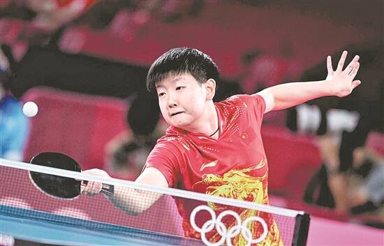 孙颖莎在比赛中 羊城晚报特派东京记者 汤铭明 摄 |