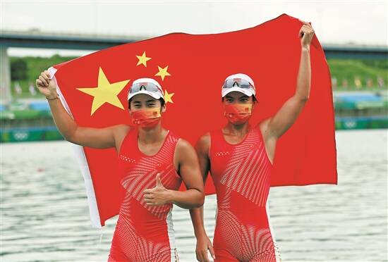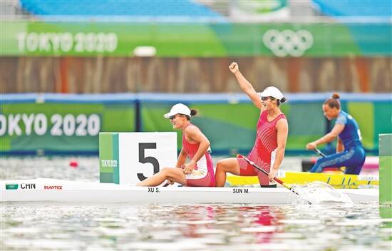 今早,在皮划艇静水女子500米双人划艇决赛中,中国组合徐诗晓/孙梦雅夺得金牌。这是中国体育代表团在本届奥运会夺得的第37枚金牌 新华社发