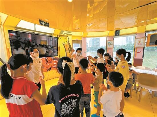 羊城晚报讯 记者严艺文,实习生吕绮琪、马凯盈,通讯员吴越、戴天摄影报道:8月7日,广州公交集团电车有限公司和客轮公司联合开展“寻味广府文化,共享低碳绿色出行”主题水陆游学活动。22组市民家庭乘坐“华林—步行街1线”,游览上下九步行街,探寻西关味道,在主题客轮上体验新型“水陆游学”新模式。 7日上午,以淡黄色怀旧风为主基调的“华林—步行街1线”从恒宝广场公交总站出发,载着参与活动的市民家庭穿梭在西关特色骑楼建筑中,开启“陆上”游学第一站。记者看到,“寻”系列主题车车身绘制着粤剧博物馆、陈家祠、上下九步行街等西关风情景点,主题车内部铺设石纹地板、布置花厅吊顶,乘客犹如置身西关大屋。 随后,“陆上”游学第二站带领市民家庭深入探寻经典美食品牌,参观大虾饺、天鹅酥、靓葡挞等手工茶点制作全部工序。小朋友们还动手制作了传统鱼皮小吃,翻捞加过酱油的鱼皮,小心翼翼地撒上炒过的芝麻,一道传统鱼皮小吃就大功告成。“小孩虽然在广州长大,却不怎么会讲粤语,今天正好可以来感受广州的文化底蕴。” 家长邓女士表示。 据介绍,“华林-步行街1线”终点为地铁长寿路站,环线全长4.6公里,线路共设置地铁长寿路站、和平中站等10个站点。途经上下九步行街、华林寺、陈家祠、锦纶会馆等标志性景点,实现与地铁一号线、六号线、八号线多个站点的无缝接驳。 在“华林-步行街1线”的基础上,电车公司延续巴士学堂的公交互动教学体验,融合陆上游学与水上游学,利用西关低碳便民线打通水上游览之路,建立新型“水陆游学”新模式。在最后一站“水陆游学”实践中,市民家庭搭乘主题客轮学习游船知识,游览珠江沿岸文化景点并感悟广府文化情怀。 电车公司相关负责人表示, “巴士学堂”主题水陆游学集观光游览、动手实践、文化宣传和安全教育于一体,寓教于游,计划周末开展,目前免费面向市民开放报名。同时,为推动华林街、西关片区传统品牌升级发展和拉动周边景点经济增长提供公交支持,践行低碳出行理念,为环境保护贡献公交力量。