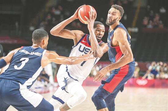 杜兰特(中)突破法国队防线 图\视觉中国 |