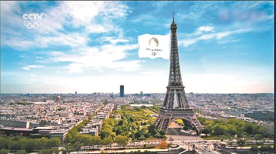 以埃菲尔铁塔为旗杆,奥林匹克五环旗飘扬 |