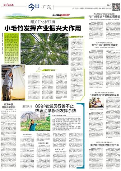 羊城晚报记者 张文 通讯员 谭玉玲 肖晓珍 走进韶关市仁化县长江镇,远远就能望见山林竹海碧波涌动,道路沿线的绿化、景观随处可见竹文化元素。据悉,仁化县有毛竹面积逾35万亩,