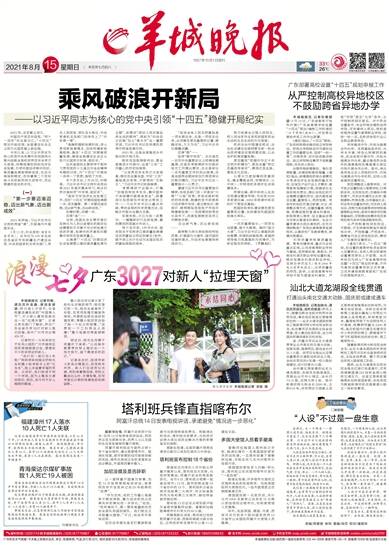 1957年10月1日创刊 2021年8月15日 星期日 辛丑年七月初八 责编/苏碧青 林圳 美编/肖莎 校对/潘丽玲 报料热线:(020)114转羊城晚报报料、(0