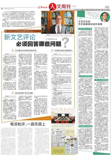 □文/羊城晚报记者 吴小攀 8月2日,中央宣传部等五部门联合印发《关于加强新时代文艺评论工作的指导意见》,明确加强新时代文艺评论工作的总体要求,指出要把好文艺评论方向盘、开展专业权威的