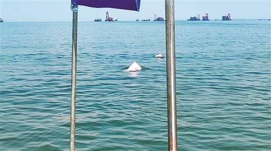海事执法人员拍摄的中华白海豚 |