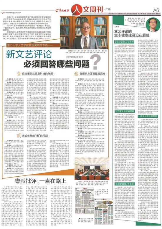 2021年8月15日羊城晚报人文周刊·广角版“新文艺评论”专题报道 |