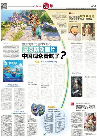 羊城晚报记者 李丽 豆瓣评分7.3,首周末票房3305.5万元,皮克斯的动画片《夏日友晴天》上周末登陆中国内地影市遇冷了。不仅如此,这部号称“皮克斯35周年特别呈现”的作品,实际上还创下了近十年来皮克斯内地上映作品的豆瓣口碑新低。 《夏日友晴天》真有那么差吗?社交媒体上,持相反观点的影迷们就此展开了激烈探讨。有一个观点或许双方都能认同:它并不是什么大烂片,但它确实又一次辜负了人们对皮克斯的期待。 高期待,低票房 近十年口碑垫底之作 上周五,《夏日友晴天》在中国内地正式开画,但首日票房仅有可怜的752.2万元,排片占比17.8%,上座率2.5%。之后的双休日,该片票房虽略有上扬,但两天的单日票房均未超越1500万元。最终,还是上映已经超过20天的《怒火·重案》继续扛起当天乃至整个周末的大梁。开局不利之下,《夏日友晴天》如今在猫眼的预测内地总票房为8651.1万元,尚不足1亿元。 作为皮克斯原创新作,《夏日友晴天》的引进本被市场寄以厚望。毕竟去年年底,皮克斯的《心灵奇旅》虽然口碑有争议,但最终在内地拿下了3.76亿元的票房。就别提2017年底的《寻梦环游记》了,这部皮克斯的高分之作斩获中国内地票房高达12.3亿元。在这个票房低迷的暑期档,人们期待《夏日友晴天》能给市场打一剂强心针。 但若考虑到几部作品之间的口碑差,《夏日友晴天》的票房失利倒也没那么难以理解。以豆瓣为例,《寻梦环游记》豆瓣评分高达9.1分,《心灵奇旅》也有8.8分,但《夏日友晴天》豆瓣开分仅7.5分,后来还一度下滑至7.2分,之后又勉强爬升至7.3分。再往之前捋一捋,2017年的《怪兽大学》豆瓣评分8.2,2012年的《勇敢传说》评分7.6,哪一部都比《夏日友晴天》高。即使算上近年来的一些皮克斯动画续集如《玩具总动员4》《超人总动员2》,《夏日友晴天》仍是皮克斯近十年引进长片中的口碑垫底之作。 小故事,小格局 异域风情被当做“杀手锏” 《夏日友晴天》真有那么差吗?从豆瓣评分的构成来看,13.8%的观众打满分5星,0.2%的观众打最低分1星,但有多达42.2%和41.2%的人打4星和3星,典型的“中间多,两头少”,是“虽非极品,尚属佳作”的品相。 《夏日友晴天》的故事设定其实颇为有趣:两个闯入意大利海滨小镇的外来男孩,跟一个当地的小女孩开启了一场夏日冒险,但没人知道男孩们的真实身份其实是来自水底的海怪。不过,如此奇幻的设定,最终故事却只围绕一条简单的主线展开:三个孩子要参加小镇的一场意大利传统铁人三项比赛——游泳、吃意大利面和骑自行车。这也是观众观感产生分歧的一大原因:有些观众觉得,这个故事似乎显得有些格局小了,但也有观众表示他们就喜欢这种小品文调调。豆瓣网友“舌在足矣”说出了不少打4星观众的心声:“毫无疑问是皮克斯所有作品里故事最简单的一部,但梦幻般的意大利夏日塑造得太令人心驰神往了。” 《夏日友晴天》是埃里康·卡萨罗萨执导的第一部故事长片,在这之前,这位已经51岁的意大利导演曾经制作过皮克斯高分短片《月神》。跟很多导演的长片处女作一样,《夏日友晴天》取材自导演本人的家乡记忆和童年经历,卡萨罗萨说:“对我来说,这是一个深刻的个人故事,不仅因为它是在我长大的意大利里维埃拉拍摄的,而且因为这部电影的核心是对友谊的纪念。童年时代的友谊常常决定着我们未来要成长为谁的梦想,而这些成长纽带正是我们在《夏日友晴天》故事中的核心。” 影片在短短95分钟的时间里,探讨了友情、成长、自我认同、傲慢与偏见……但相较对众多主题较为潦草的探讨,《夏日友晴天》更吸引人的其实是片中处处呈现的地道意大利小镇风情。这一点也正好跟皮克斯近年的作品套路一脉相承——自从《寻梦环游记》中的墨西哥元素赢得一片赞许之后,他们就“解锁”了用异域风情来讨好观众这一新的“财富密码”。 观察 老皮克斯的新困境 其实不光在中国市场,《夏日友晴天》在美国同样未被视为“神作”。以烂番茄网为例,影评人为该片评出的新鲜度为91%,更体现普通观众感受的爆米花指数则是87%;而2017年的皮克斯高口碑作品《寻梦环游记》新鲜度高达97%,爆米花指数也有94%。相较之下,《夏日友晴天》虽然不算“烂片”,但确实可以说是皮克斯近年作品中较为“平平无奇”的一部。再加上2020年两部原创动画片《心灵奇旅》《1/2的魔法》同样平庸的表现,不少业内人士断言:曾经是世界顶级动画工作室的皮克斯,已然“走下神坛”。 被并购后,水准开始跌宕起伏 1995年的《玩具总动员》被认为是皮克斯黄金时代的开始,后来2008年的《机器人瓦力》和2009年的《飞屋环游记》同样被公认为“神作”。但有观点认为,在2006年皮克斯被迪士尼并购之后,该工作室便似乎没从双方的磨合中缓过来。在一段很长的时间里,皮克斯把原本精心打磨新创本子的精力放到了不断打造《赛车总动员》《海底总动员》等IP续集上。尽管从商业逻辑来看,做IP的好处显然易见,但皮克斯出品的水准从此开始变得跌宕起伏也是一个不争的事实。这也是为什么2015年的《头脑特工队》和2017年的《寻梦环游记》如此令人惊喜——在那之前,人们已经好久没看到真正令人眼前一亮的皮克斯动画片了。 早在《夏日友晴天》登陆内地之前,该片就通过Disney+在北美进行纯网供应。事实上,从《心灵奇旅》开