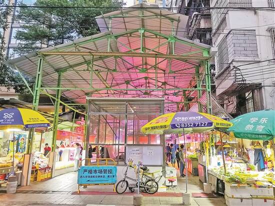 羊城晚报讯 记者梁怿韬、徐炜伦摄影报道:原位于广州市越秀区竹丝岗四马路的农林综合市场,曾因艺术工作者参与装点成为“网红菜市场”,但因建筑所在位置占据合流渠箱被认定为“涉水违建”于2020年10月底被拆除。经过近10个月的施工,原市场地块完成所有整治工程,变身口袋公园重新为周边市民服务。 24日,记者到现场看到,口袋公园设有绿化带和宣传墙,不少居民在公园内散步休憩,宣传墙目前正以“法治农林”为主题宣传法律知识。 据了解,该地块因公园设置而新增的绿化面积,能起到海绵城市的作用,收纳雨水减轻“水浸街”隐患。越秀区各职能部门还综合运用周边就地安置、整体搬迁等方式妥善分流安置原农林综合市场档主,并通过增设小型生鲜超市、协调商厦引进生鲜商户、鼓励生鲜电商加大供应等手段保障民生需求。