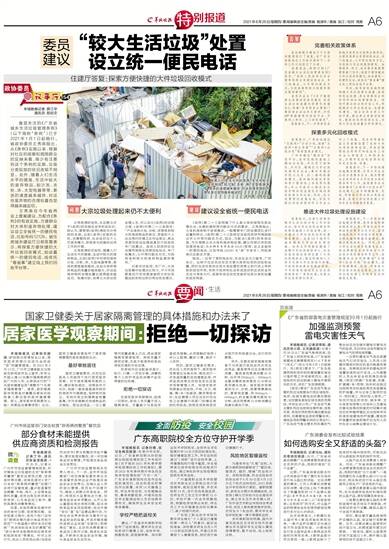 羊城晚报记者 薛江华 通讯员 邵启文 备受关注的《广东省城乡生活垃圾管理条例》(以下简称“条例”)已于2021年1月1日起施行。省政协委员王秀英指出,从《条例》实施以来,根据对社