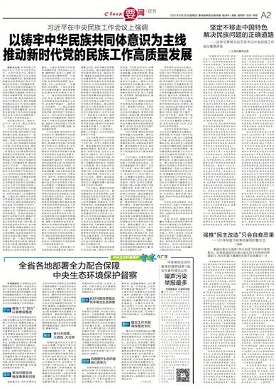 □人民日报评论员 “回顾党的百年历程,党的民族工作取得的最大成就,就是走出了一条中国特色解决民族问题的正确道路。”在中央民族工作会议上,习近平总书记发表重要讲话,全面回顾了我们党民