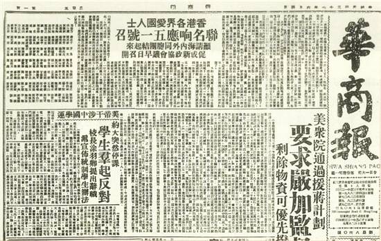 1948年6月4日,香港《华商报》报道:香港各界125位爱国人士联名响应中共“五一口号” |