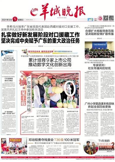 2021年9月5日 星期日 辛丑年七月廿九 26℃-34℃ 报料热线:(020)114转羊城晚报报料、(020)87776887 Q友报料:877768