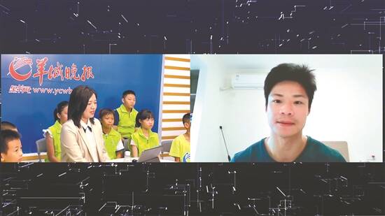 苏炳添接受羊城晚报记者和学生记者视频连线采访 陈明谦 摄 |