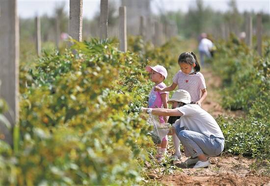游客在宁夏闽宁采摘红树莓 新华社发 |
