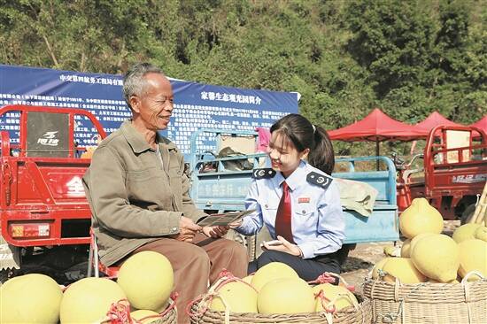 清远阳山县税务局工作人员在阳山岭背柚子节宣传涉农减免税相关政策 |