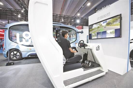 广东馆内的无人驾驶汽车技术展示 羊城晚报记者 宋金峪 摄 |
