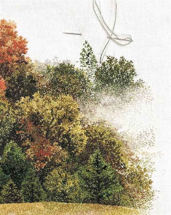 美国马里兰州的一位绣娘卡特琳·瓦茨将十字绣的绣制技巧发挥到了极致,做出了与众不同的刺绣风景画。 她用类似十字画的画布或一种漂白过的粗格帆布来呈现作品,但绣法上明显有了自己的独到之处。通过密集的打结和针脚,她捕捉到一种极为细腻的表现手法,表现出更为真实的田园生活的画面。画面上多用绿色、蓝色、棕色等冷色系的丝线,也更能表现出一种山水画的宁静。 宁静的乡间、布满苔藓和藤蔓的废弃棚屋、闪闪发光的海面……绣娘瓦茨说,她很少会先打底稿,也从不用刺绣用的那种绷架,就手持针线,自由发挥,将自己所感所想在布面呈现。她说这样可以更自由地调整画面的色彩浓淡,可以呈现出阳光明媚,也可以表现出阴雨绵绵。 所以,能有这样的出品,只能说她除了有一些刺绣的基本功底,也相当有天赋吧。 最近,这位心灵手巧的艺术家还在陆续更新个人网页,展示她的更多作品,让人期待。 (文/CC 图/©Katrin Vates)