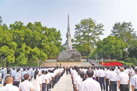 羊城晚报讯 记者李焕坤、罗仕报道:今天是中国烈士纪念日。上午9时,广东省、广州市公祭烈士活动暨向广州起义纪念碑敬献花篮仪式在广州起义烈士陵园隆重举行。 烈士陵园松柏翠郁,丰碑岿然,庄严肃穆。9时,公祭活动正式开始。全场奏唱中华人民共和国国歌。随后,全场肃立,向烈士们默哀。默哀完毕,少先队员代表齐声献唱《我们是共产主义接班人》。 伴随着深情的《献花曲》,礼兵托起花篮,礼步缓缓走向烈士纪念碑,将花篮摆放在纪念碑基座前。各界代表依次瞻仰烈士纪念碑,深情缅怀革命烈士为实现民族独立、人民解放和国家富强、人民幸福立下的不朽功绩。