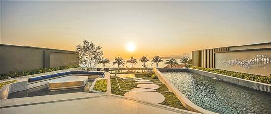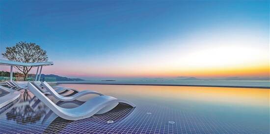 半山“悬崖”边上的无边际泳池几乎和大海融为一体 |