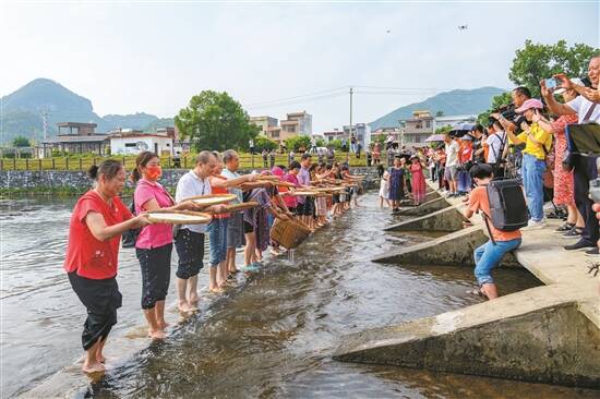 在清远连州沙坊村,游客体验沙坊粉制作 |