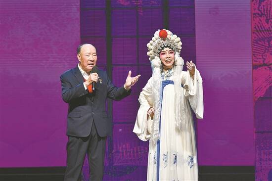 黎子流(左)与倪惠英表演粤曲对唱《高歌一曲百万行》 文瑶 摄 |