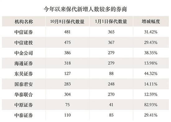 文/表 羊城晚报记者 丁玲 证券行业又成就业市场“香饽饽”?随着融资融券、场外金融衍生品业务等业务的开展加之注册制改革的落地,证券业活跃度上升,对人才吸引力进一步加强。根据中国证券业协会数据,截至目前,证券行业从业人员共计34.27万人,较今年年初增加1万人,离上一次站在34万关口已经过去三年。 中信证券从业人员居首 数据显示,“大平台”+“高薪”让头部券商更能吸引人才。截至目前,共有5家券商从业人员数量破万。中信证券从业人员数量1.227万人,从去年的第四名升至榜首,今年以来新增人数达1786人,同样排在第一位。此外,国信证券、广发证券、国泰君安分别有1.153万人、1.147万人、1.092万人。中信建投从业人员数量也迈入“万人”关口,目前共有1.035万人。 作为中金公司的子公司,中金财富证券的“抢人”实力也不容小觑。今年年初该券商有3878人,截至目前已有5350人,增长幅度达到38%,并超过中金公司的4218人。 这与公司发力财富管理不无关系。中金财富证券今年以来大举招兵买马,以投顾为例,公司今年以来增加414人至1574人,增长35.69%。目前中金财富证券仍在持续招人,有招聘网站显示,共有涉及IT、投资经理、产品业务经理、渠道总监、私人财富、后台等的190个职位。 另外,中金财富证券的新增员工也有部分来自中金公司。根据7月11日中金公司发布的公告,将境内财富管理业务转移至中金财富,进一步实现双方业务整合,中金财富将作为子公司开展财富管理业务,中金公司作为母公司开展投行、股票、固收、资管、私募等业务。部分中金公司员工因“机构内变更”关系,并入中金财富证券。 不过,也有约30%的券商员工数量减少,减员数量较多的券商集中在上海地区。今年以来,申万宏源员工总数减少361人。海通证券、光大证券的从业人员数量分别减少259人、291人。以互联网券商为标签的东方财富证券今年以来减少278人。 新增投资顾问近6000人 券商不同业务板块的员工数量也在发生变化。尽管经纪人和投资顾问一直以来都是证券行业的两大岗位,截至目前分别有5.88万、6.70万从业人员,但在财富管理转型加速的大背景下,经纪人数量持续下降,今年以来减少6134人。而证券公司投资顾问总人数则持续上升,今年以来增加5993人。 对此,有业内人士表示,过去经纪业务中通道收入贡献较大,经纪人对券商来说是重要的获客和收入增长的力量,但随着近年来行业佣金的下滑、互联网获客兴起,传统获客的收入贡献下滑,对经纪人的需求相应有所减少,同时行业开始向提供高附加值的专业服务(如投顾服务、财富管理等)转型,对投资顾问等专业岗位需求增加,推动了整个行业的人才结构转型。 数据显示,共有5家券商投顾数量超过3000名,其中广发证券投顾数量最多,共有3921人。中信证券3484名;国泰君安3346名;银河证券3262名;中信建投3146名。 从增员数量来看,招商证券投资顾问数量上升最多,相较年初增加976人至2183人,增长幅度达到81%。据了解,今年招商证券财富管理业务动作频频,入局基金代销战;拿下基金投顾资格。此外,兴业证券、国信证券、广发证券的投顾数量较年初均增加300人以上。 不过,华创证券的投顾队伍出现人员流失,从年初的591人减少到395人,减少幅度达到33%。 三大券商保代人数领先 另外,值得一提的是,随着近年来资本市场改革持续深化,科创板、创业板注册制、北交所等改革措施逐步落地,投行业务迎来巨大发展机遇,各大证券公司都在加大人才储备力度。 数据显示,截至目前,共有两家券商保代人数已经突破400人,中信证券与中信建投分别有481人、475人。中金公司、海通证券、华泰联合分别以386名、318名、304名保代依次排在3-5位。 从数量变化来看,中信证券、中信建投、中金公司前三季度新增登记保代人数最多,均突破百人,分别新增115人、108人、107人,海通证券、东吴证券、国泰君安、华泰联合、中原证券前三季度新增保代逾30名。不难看出,三家头部券商新增保代人数远远超过后来者。 此外,三家头部券商今年以来持续招揽投行人才,在各地布点,涉及承揽、承做、投后管理等。 同时,头部券商的薪资在“抢人大战”中也极具竞争力。有业内人士指出,今年有头部券商投行业务涨薪,比如应届生底薪涨至3.8万元。