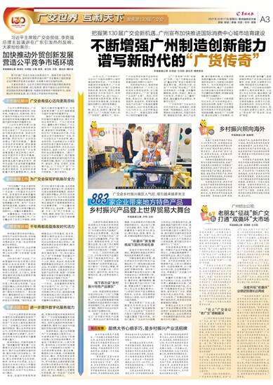 羊城晚报记者 戚耀琪 本届广交会在中国共产党成立100周年之际、全面建设社会主义现代化国家新征程开启之年和“十四五”规划开局之年举办,意义重大。在众多的“意义”当中,脱贫攻坚完成、乡村振