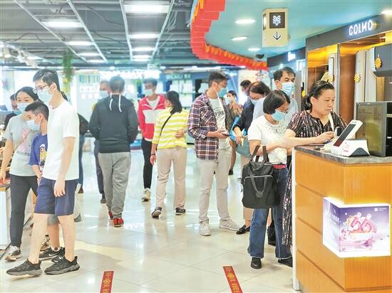 王府井百货近日人流涌动,埋单都要排队 羊城晚报记者 颜长江 摄 |