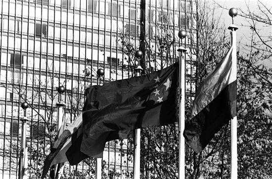 中国恢复在联合国的合法席位后,五星红旗开始飘扬在联合国大厦前的广场上(资料图) 新华社发 |