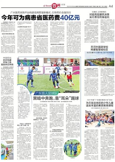 文/羊城晚报记者 符畅 柳卓楠 通讯员 粤残宣 图/羊城晚报记者 柳卓楠 “喂,喂……” “10米!打!” “防守!” 10月27日下午3时许,陕西省警官职业学院的绿茵场上,球员、守门员、教练员、引导员的声音不断交织,与激烈的赛况交相呼应。这是全国第十一届残运会暨第八届特奥会盲人足球比赛的第六轮比赛现场,由广东队对战云南队。 盲人运动员如何踢足球?眼睛贴上白色胶布,再戴上黑色眼罩,运动员完全置身于黑暗中。奔跑、传球、射门,每个动作都只能依靠声音来进行判断。赛场上,守门员、教练员、引导员就是他们的“眼睛”。近日,羊城晚报记者探访广东盲人足球队,了解他们背后的付出与坚持。 对战上一届冠军云南队,拿下关键一局 “喂,喂,喂……”球场一端,引导员不停呼喊,运动员在球场的另一端排成一列,双脚带球,有序地跑向引导员。此时,距开赛不到半小时,广东队正进行最后的训练。 本届残特奥会盲人足球比赛采用的是分组循环赛。这一场,广东队面对的是上一届全国残特奥会冠军队伍云南队。此前的五轮比赛中,广东队取得三胜一平一负的战绩,能否登上本届残特奥会的领奖台,这一场比赛的胜负至关重要。 刚开局,战况就十分激烈,抢夺球权过程中,广东队前锋、7号许观生突然摔倒在地,腿部受伤,但依然咬牙坚持留在赛场。上半场时间过半,双方持续胶着,广东队2号陈俊坤突破对方4人防守,在引导员“打,打,打”的呼喊声中,12米线突破,左脚稳稳一拨,右脚用力射门,进了!下半场比赛,广东队积极回防,不给对方进球机会,最终将比分锁定在1:0,取得胜利。 “能踢进这一球,我非常激动。这场比赛打出了我们平时训练的水平。”陈俊坤说,赛前队员们就互相打气,一定要尽力拿下这场比赛,为这几年的努力训练争取一个好成绩。 “你们是最棒的!”赛后,广东省盲人足球队教练许宇飞激动地抱住队员。他表示,这场比赛中,无论是控制球、突破,还是比赛节奏的控制,队员们都能按照赛前制定的战术进行发挥,对于这个成绩,他感到非常满意。 身处黑暗,也能在绿茵场上“飞”起来 这一次的胜利来之不易。主力队员张家彬、梁仲志和守门员王圳作为中国国家盲人足球队的成员,今年刚征战完东京残奥会,赛后又隔离了近一个月时间。“对球的熟练度以及技战术的意识,会有所欠缺。”许宇飞说。回归广东队后,一方面是加强对这几位队员的无氧耐力训练,另一方面则是让他们尽快与其他队员打好配合。 和普通的足球运动不同,盲人踢足球,要经历常人难以想象的艰辛。许宇飞介绍,五人制盲人足球属竞时比赛,上、下半场各20分钟,中场休息10分钟。“犯规、出界、换人、暂停,都会停止计时,所以比赛时间往往会拖很长。”他说。并且球场的边界有约1米高的围栏,以便于提高比赛节奏和引导场上队员确定方位,这导致球员在场上需要不断折返跑,对体力和耐力的要求非常高。 盲人足球运动员身处黑暗中,所有动作只能依赖听觉。“传球的方向,我方队员的位置,对方防守队员的位置,还有教练员、引导员、裁判员的干扰,要分辨各种声音,并在短时间内进行正确判断,真的非常不容易。”许宇飞说。 他表示,盲人足球的球和普通足球也不一样,盲人足球比赛专用球内有六组铃铛,一滚动就会发出声响,便于运动员找到球的位置。此外,盲人运动员在带球时,需要将球保持在双脚中间,通过脚背内侧左右发力来带球,有时用力过猛将球踢远,另一只脚接不到球时,只能伸出脚在周围划圈寻找。 “最困难的,还是克服在黑暗中奔跑的恐惧。”许宇飞说,很多身体条件不错的队员,难以克服内心的恐惧,打了退堂鼓。坚持下来的,往往也要花两到三年的时间,才能够勇敢地跑起来。 广东省盲人足球队队员许观生表示,刚开始训练,经常会被撞得青一块紫一块,内心有过害怕,但通过不断地磨练,“后面感觉自己好像可以‘飞’起来。”他说。 怀揣足球梦的少年们,从自卑走向自信 日复一日的训练,绿茵场上挥洒汗水,这群热爱足球的少年,意志更加坚韧,也越来越自信。 1996年出生的许观生,2009年被选送至广东省盲人足球队。因为皮肤偏黑,又瘦瘦小小,大家都称他为“黑狗”。“才训练两年,他就以‘小快灵’而崭露头角,16岁就进入国家盲人足球队,成为最年轻的国脚。”谈及“黑狗”,许宇飞满是骄傲。 赛场上的“黑狗”,不断带球突破,全场奔跑,让人惊叹于他的体能和爆发力。“足球带给我最大的改变,就是更加自信了。”许观生说,在和外界接触时,他已经完全不会自卑了。多年的朝夕相伴,他也早已把队里其他小伙伴当作兄弟,可以无条件信任他们。“希望能和他们一起,继续为国争光。”他说。 比赛表现同样抢眼的,还有广东省盲人足球队队长张家彬。张家彬1994年出生,13岁那年被选入湛江市特殊教育学校就读训练。“他被大家称作‘战神’,即使被踢翻在地,头破血流,也绝不停止脚步。”许宇飞说。2019年亚洲盲人足球锦标赛决赛对战伊朗队过程中,张家彬因带球进攻时,眼部和嘴部被严重撞伤。简单处理伤口后,他再次回到赛场,并带领队伍一举夺得比赛冠军。也正是这场比赛,为中国盲足拿下东京残奥会的入场券。 在许宇飞看来,队长不是一个谁都能胜任的职务。“既要有责任和担当,也要在队里有一定的地位。在日常训练中,还要能辅助教练开展各方面工作。”他说,而