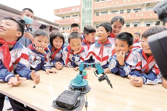 文/图 羊城晚报记者 鄢敏 通讯员 岳青 “红星闪闪放光彩,红星灿灿暖胸怀。”伴随着孩子们朝气蓬勃的歌声,10月27日,2021年“广东福彩育苗计划”在江门市新会区正式启动。至此,这项公益行动已经走过十个年头,累计惠及少年儿童超过10万人次。 扎染、口琴、语言艺术……当天,大鳌镇南沙小学的同学们兴致高涨,体验了“无人机实操飞行”“水火箭制作与试射”“机械手臂实操体验”等7门特色课程。“口琴的声音很悦耳,想多学几首回去吹给爸爸妈妈听。”五年级学生小廖说,以前的音乐课大多由老师领唱,这是第一次接触到口琴。 据介绍,本次“福彩育苗号·流动少年宫”召集了20余名优秀教师,开展“传统文化+科技”公益送教。这些令人耳目一新的素质教育课程,受到了孩子们热烈欢迎。 活动现场,还来了一位“特别的老师”——江门市灯塔领航宣讲队成员、“党史青(少)年说”冠军宋艳婷。20岁那年,她参军入伍,前往黎巴嫩执行国际维和任务。宋艳婷分享了自己的成长故事,鼓励青少年“在学思践悟中坚定理想信念,在奋发有为中践行初心使命”。 “我们一直坚持要深入粤东粤西粤北地区,到广东省最偏僻的地方去,给教育资源相对匮乏地区的孩子们送去知识与快乐。”广东省青少年宫协会相关负责人表示,“广东福彩育苗计划”将持续发力,整合各界资源,为省内更多少年儿童、外来务工人员子女及留守儿童提供丰富的素质教育课程。 据悉,“广东福彩育苗计划”由共青团广东省委员会、广东省精神文明建设委员会办公室、广东省教育厅、广东省福利彩票发行中心联合开展。2021年,依托“福彩育苗班”“福彩育苗号·流动少年宫”和“福彩育苗公益课堂”等形式,深入粤东粤西粤北欠发达地区为少年儿童提供前沿的素质教育内容,促进乡村振兴,助力广东省青少年全面成长。