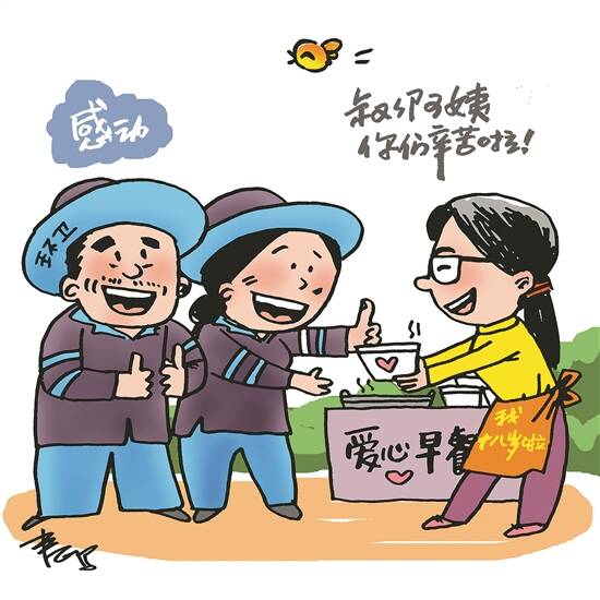 文/贺成 图/春鸣 10月30日,为了给自己一个不一样的18岁成人礼,商丘高三女孩张资昕掏出自己平时积攒的零花钱,在“商丘好人爱心早餐”店请152名环卫工吃了一顿饭。这一幕被爱心义工拍下上传网络后,很快就上了热搜,大家纷纷为爱心女孩张资昕点赞。(11月1日《大河报》) 这个高三女孩别样的“18岁成人礼”,得益于她母亲的言传身教。据报道,这位孩子的妈妈,十多年前就在商丘市义工联做义工,平时有志愿活动,她都会带上女儿一起参加。“商丘好人爱心早餐”店在成立之初她就参与其中,女儿课余放假之后也常过来帮忙,为环卫工人打饭、盛菜、收拾餐具。 正是这位母亲自身的善良,让这位女孩受到熏陶,并有机会接触到环卫工人,对这个群体有了特殊的理解和感情,才有了这个让人为之点赞的“成人礼”。人们从中不仅看到了一个善良有爱心的女孩,还看到了善良和爱心的渊源。 女孩请环卫工人吃饭的视频被上传网络后,很快引起网友点赞转发。有网友留言:“这比那些相互攀比、大摆生日宴的好太多,父母是孩子榜样。” 爱心、善良,是每个人都心驰神往的,有时,一件貌似不起眼的小事,都会触发网络共情。