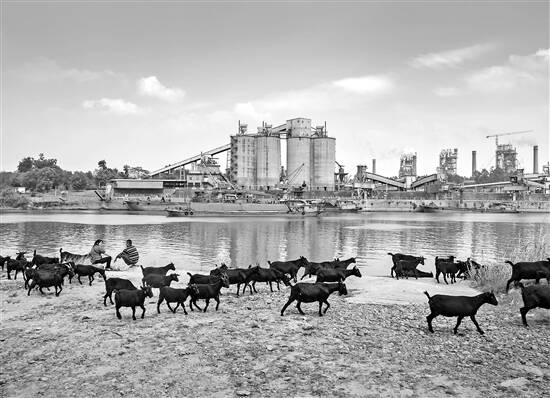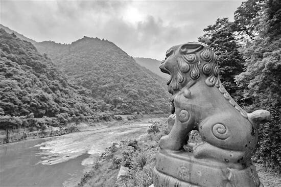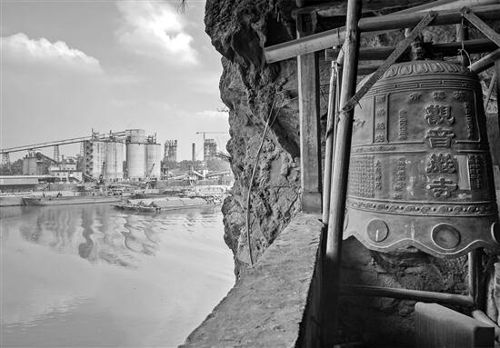 北江边的观音岩寺,古老的建筑与新的工厂 |
