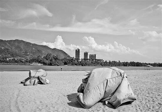 因疫情影响,清远市伦洲岛北江沙滩上的摊档停摆了一段时间 |