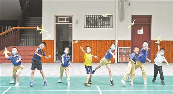 广州市小北路小学(天香校区)的学生,在操场上放飞自己制作的飞机模型(资料图) 羊城晚报记者 林桂炎 摄 |