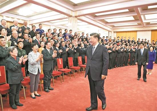 11月5日,党和国家领导人习近平、王沪宁等在北京人民大会堂会见第八届全国道德模范及提名奖获得者 新华社发 |